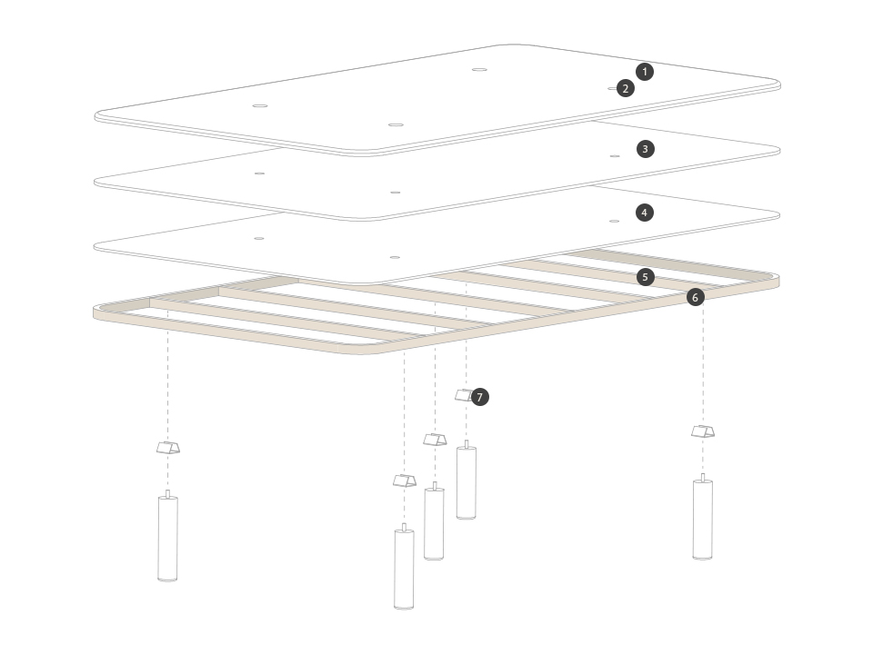 Sistema de fijación diseñado y patentado por Sonpura. Estabilidad del 100% eliminando cualquier movimiento de la base para un descanso más confortable. 4 puntos de refuerzo.