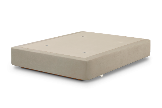 Canapé sin patas, con un zócalo perimetral que permite el apoyo directo al suelo, evitando la entrada de polvo