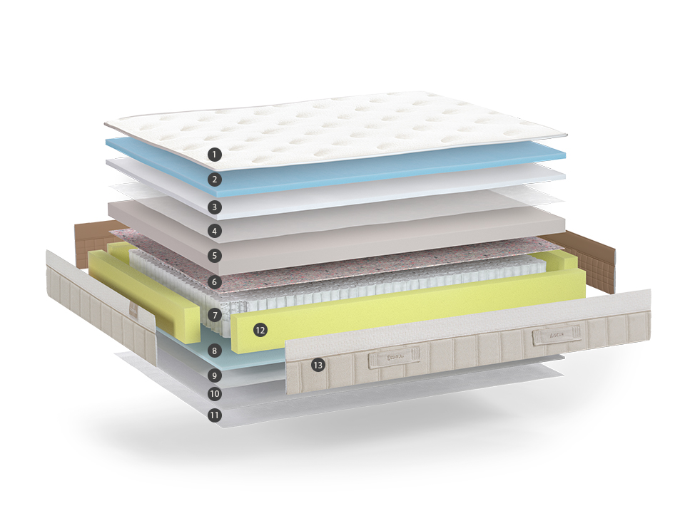 Espumación técnica de alta suavidad. Gracias a su composición de célula abierta y su gran porosidad, proporciona una elevada ventilación y transpiración para un descanso fresco.