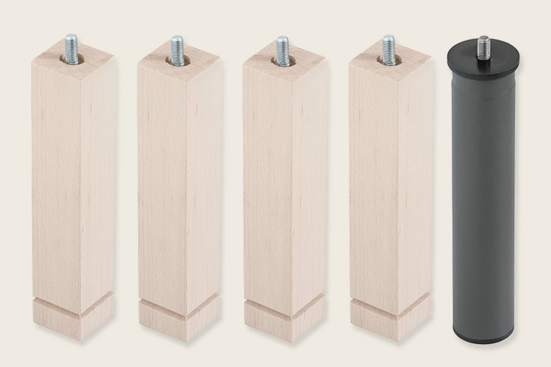 • Juego de 4 patas cuadradas abedul + 1 metálica de 25cm