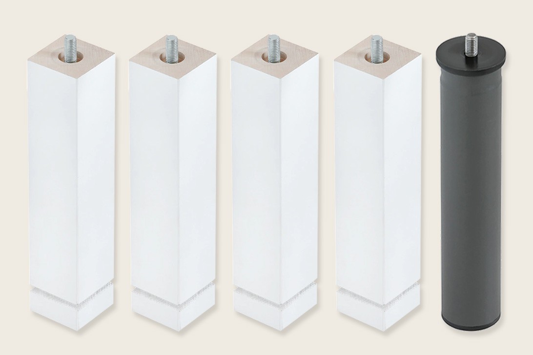 • Juego de 4 patas cuadradas blancas + 1 metálica de 25cm